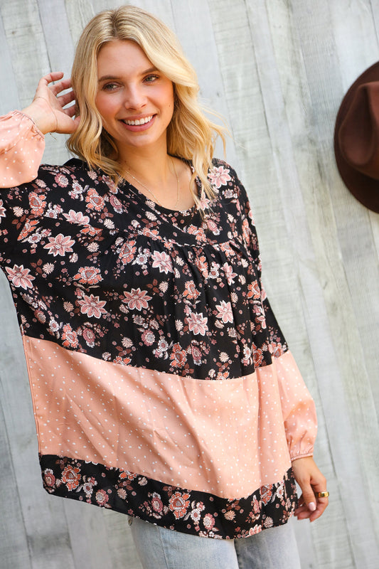 Field of Peach Blossoms Bubble Sleeve Blouse